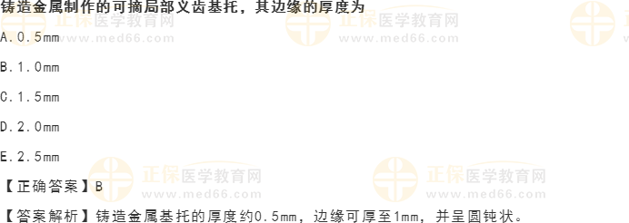 為幫助口腔執(zhí)業(yè)醫(yī)師資格考生鞏固有關“鑄造金屬基托”的知識點,醫(yī)學教育網(wǎng)小編為大家整理了相關知識點測試題,希望對大家備考有所幫助!
