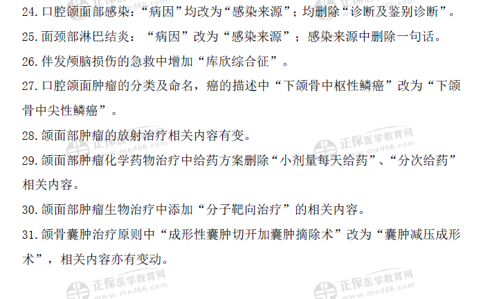 2021年口腔執(zhí)業(yè)醫(yī)師《口腔頜面外科學(xué)》考試指導(dǎo)用書核心變動35項(xiàng)