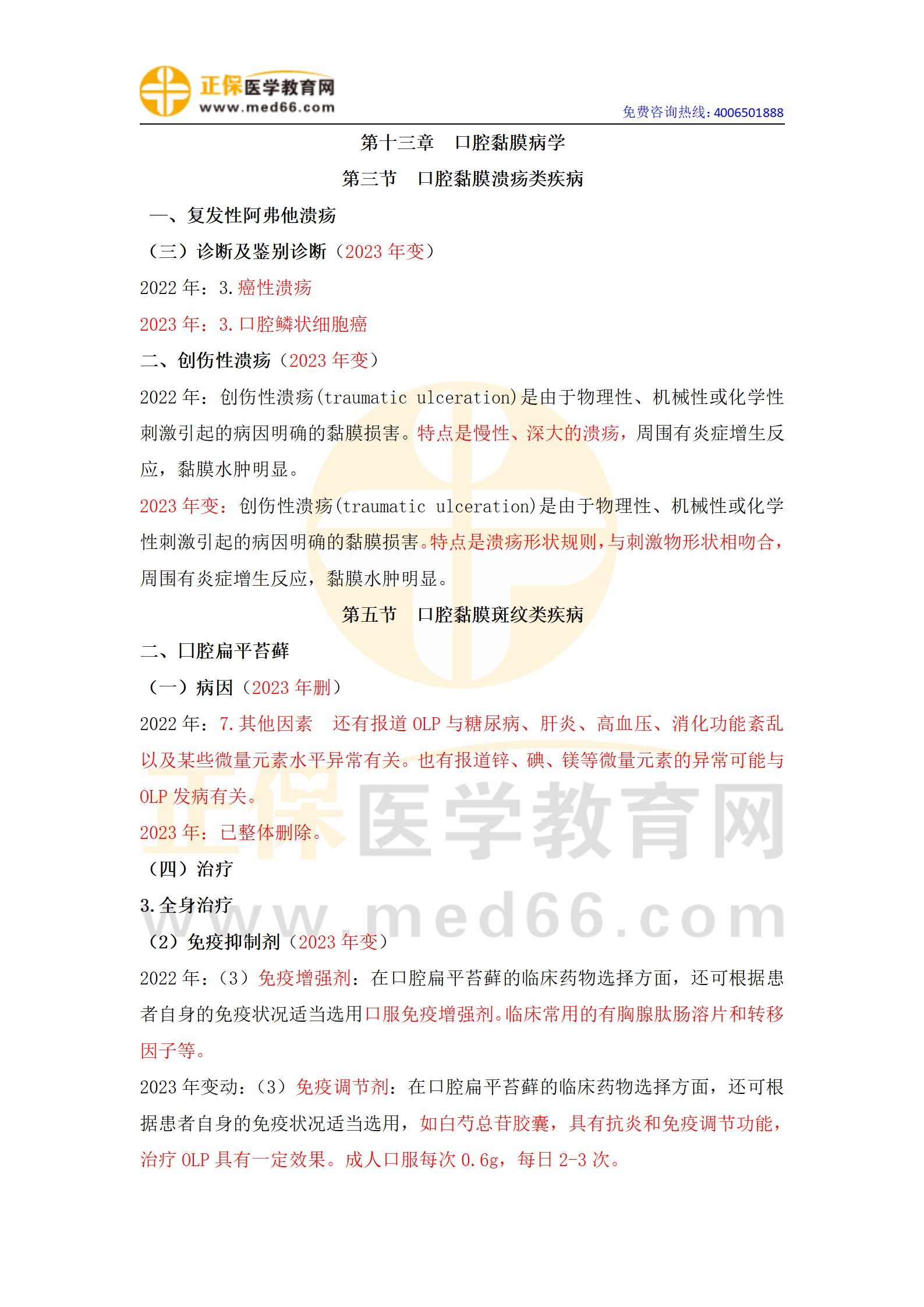 2023年口腔執(zhí)業(yè)醫(yī)師《口腔黏膜病學》教材變化詳細版!2023年口腔執(zhí)業(yè)醫(yī)師考試教材變動,網校老師已經整理出來了,免費分享給大家,幫助各位考生備考。立即查看課程>>