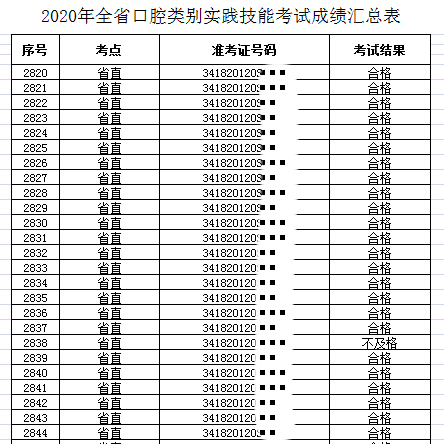 2020年安徽省直口腔執(zhí)業(yè)醫(yī)師筆試考試成績(jī)單公示!