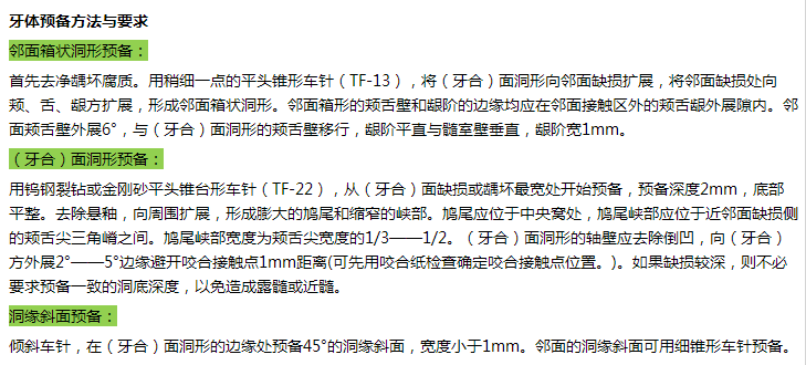 磨牙鄰(牙合)面合金嵌體牙體預備術(shù)前準備、操作方法與要求