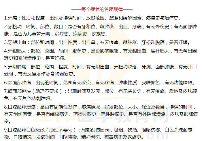 2021口腔執(zhí)業(yè)醫(yī)師實踐技能沖刺核彈資料:病史采集模板+癥狀答題要點!