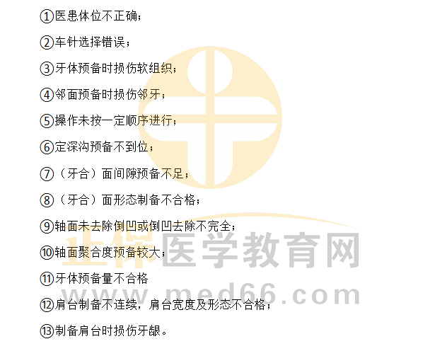 2023口腔執(zhí)業(yè)實踐技能考試第一站考試內(nèi)容為口腔檢查。為幫助大家注意考試過程中的易錯點,醫(yī)學(xué)教育網(wǎng)小編整理了“2023口腔執(zhí)業(yè)實踐技能考試易錯點:磨牙鑄造金屬全冠的牙體預(yù)備”相關(guān)內(nèi)容:
