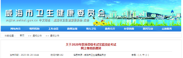 威??键c(diǎn)2020口腔執(zhí)業(yè)醫(yī)師實(shí)踐技能繳費(fèi)于6月30日-7月5日進(jìn)行!具體通知繳費(fèi)方式、繳費(fèi)時(shí)間相信威海環(huán)翠區(qū)/文登區(qū)/榮成市/乳山市等地的考生都想知道,醫(yī)學(xué)教育網(wǎng)小編搜集整理通知詳情如下: