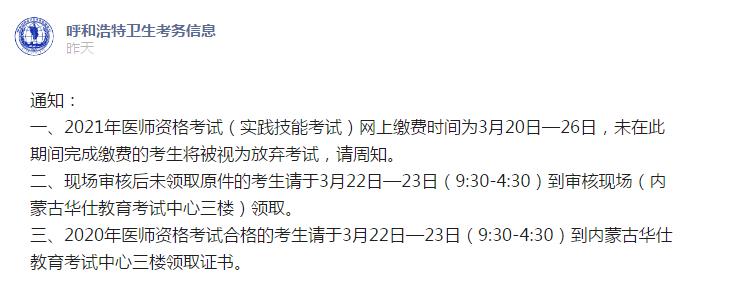 三、2020年醫(yī)師資格考試合格的考生請于3月22日—23日(9:30-4:30)到內(nèi)蒙古華仕教育考試中心三樓領(lǐng)取證書。
