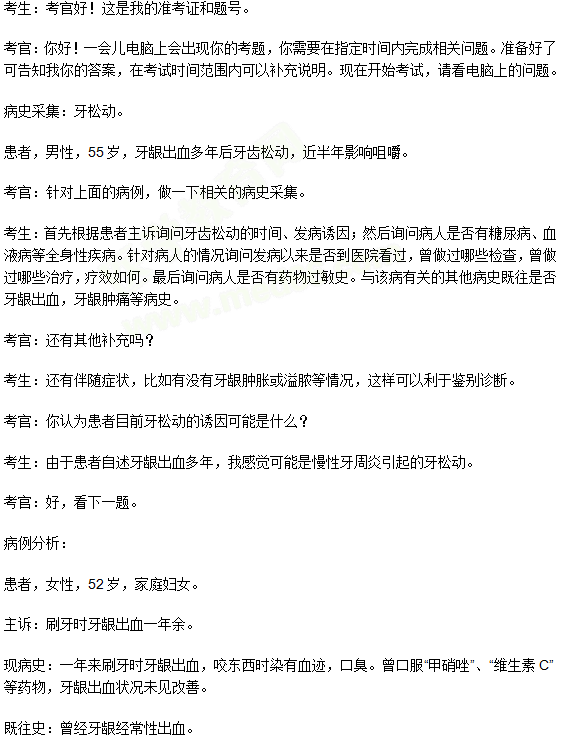 醫(yī)學(xué)教育網(wǎng)編輯整理了“口腔執(zhí)業(yè)醫(yī)師實(shí)踐技能樣題:牙松動(dòng)”,詳情如下: