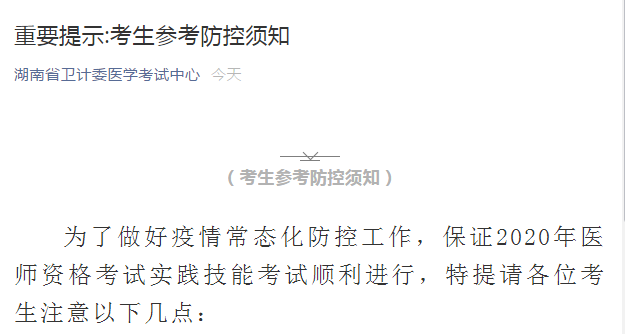 湖南省醫(yī)考中心:2020年口腔執(zhí)業(yè)醫(yī)師資格考試實(shí)踐技能考試考生參考防控須知