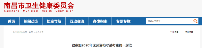 你們好!2020年全國醫(yī)師資格實踐技能考試將于7月10日-29日進行,為確保廣大考生平安順利考試,特作如下溫馨提示: