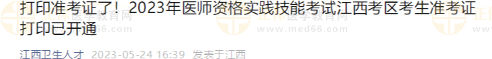 2023年醫(yī)師資格實踐技能考試江西考區(qū)考生準考證打印功能即日(5月24日)起開放。