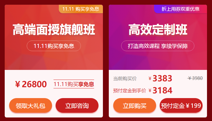 10日前支付課程定金,在11月11日當(dāng)天支付尾款,就可享超低8折優(yōu)惠哦!