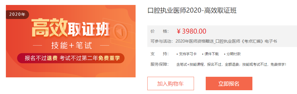 早買早學習!早成功!早加薪!你還在猶豫什么!2020年口腔執(zhí)業(yè)醫(yī)師課程班次選擇>>