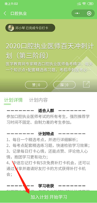 - · 傾情推薦“打卡神器”,2023年口腔執(zhí)業(yè)醫(yī)師“醫(yī)考愛打卡”刷題小程序第2階段開啟啦!