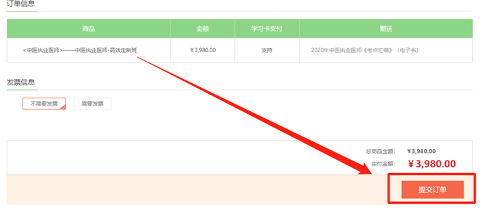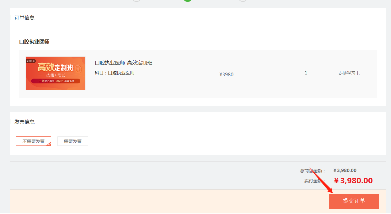 第二步:在訂單頁確認(rèn)無誤后,點(diǎn)擊“提交訂單”;