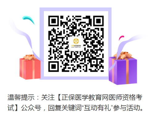 微信關注【正保醫(yī)學教育網醫(yī)師資格考試】公眾號,回復關鍵詞“互動有禮”參與活動!