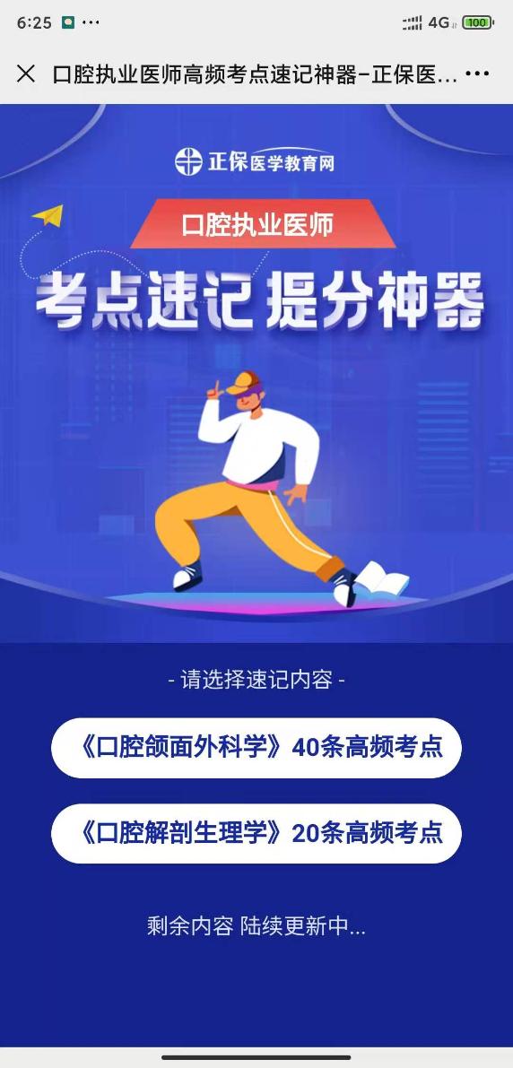 好消息!好消息!正保醫(yī)學(xué)教育網(wǎng)全新推出口腔執(zhí)業(yè)醫(yī)師考點(diǎn)速記**神器,為大家準(zhǔn)備了2021口腔執(zhí)業(yè)醫(yī)師重點(diǎn)科目精選速記考點(diǎn),實(shí)時(shí)更新中!不會(huì)的考點(diǎn)刷一刷,再記一遍!趕緊去分享軟件學(xué)習(xí)吧!