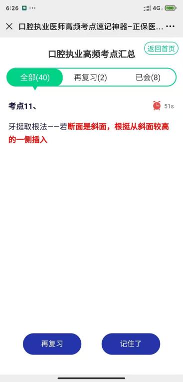 三、沒有記住的考點(diǎn)可以點(diǎn)擊“再復(fù)習(xí)”;