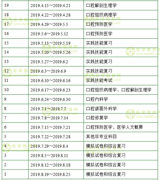 2019年口腔執(zhí)業(yè)醫(yī)師考試大綱和教材相繼公布之后,相信很多考生思想上已經(jīng)行動,但也只是想快點啟動復(fù)習(xí),往往沒有落到實處,比如說好的復(fù)習(xí)規(guī)劃表呢?是不是還沒有貼到你的書桌前,還沒有做好吧?