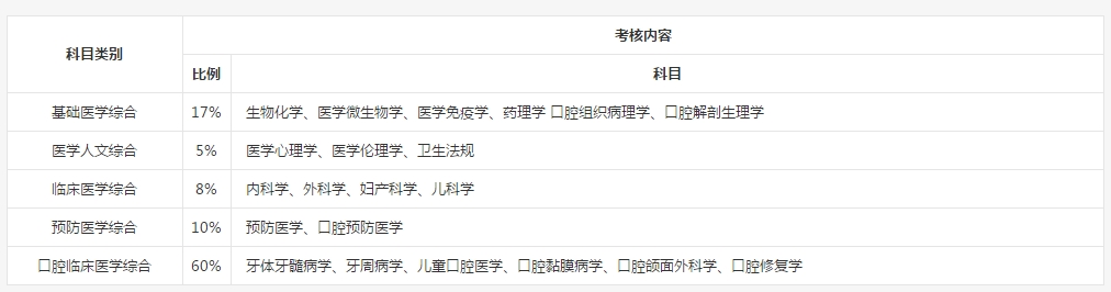 2019年口腔執(zhí)業(yè)醫(yī)師綜合筆試科目分值占比