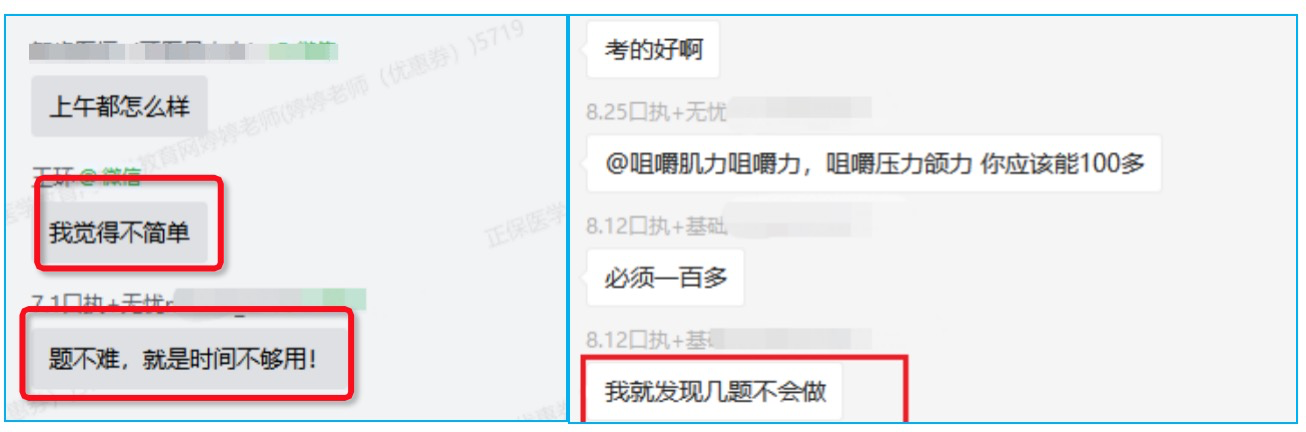 從各位考生的反饋中可以看出,“會者不難”說明此次考試如果認真學習的話,通過是沒有問題的,大家一定要對自己有信心。會的考點可能是平時老師重點強調的,但有些感覺難度大的考點,可能就是稍微偏一點的內容,或者是與臨床結合比較緊密的,鍛煉思維邏輯的內容,這種題目就對大家有了更高的要求,也是拉開分值的題目??荚囍谐霈F(xiàn)一部分不會的題目也是很正常的現(xiàn)象,大家不用局限于自己不會的題目而糾結。