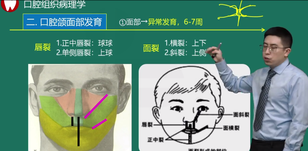 知識點:上下頜突未聯(lián)合;上頜突與側鼻突未聯(lián)合