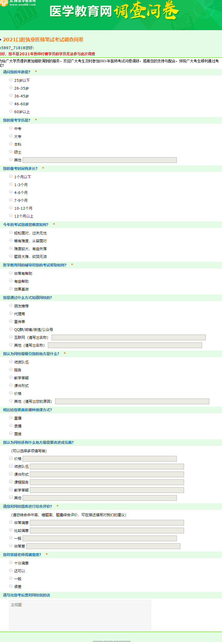 @所有學(xué)員,這里有一份口腔執(zhí)業(yè)醫(yī)師調(diào)查問(wèn)卷請(qǐng)查收!
