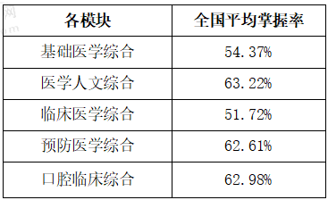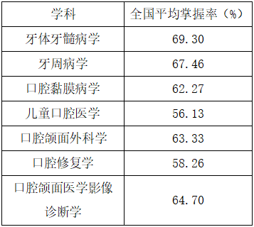 2021年口腔執(zhí)業(yè)各模塊各學科全國平均掌握率