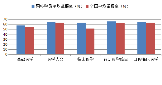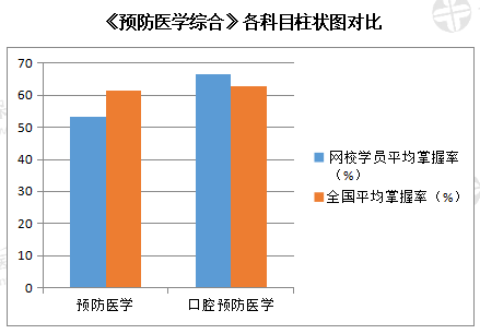 (2)根據(jù)網(wǎng)校學(xué)員此模塊考試掌握率情況分析,口腔預(yù)防醫(yī)學(xué)學(xué)員平均掌握率高于全國平均掌握率,說明這門科目網(wǎng)校學(xué)員正確率較高。這也是一個正?,F(xiàn)象,對于口腔預(yù)防醫(yī)學(xué)而言,屬于口腔專業(yè)重點掌握的一門科目,且在考試中占有一定的分值,所以其掌握程度需要引起重視。而預(yù)防醫(yī)學(xué)屬于相對較難的一個科目,學(xué)員平均掌握率低于全國平均掌握率,說明大部分學(xué)員對這個科目的掌握還是薄弱一些,但對比全國較高的平均掌握率,說明我們在這個科目的掌握上還存在一定差距。后期需要在課程內(nèi)容的全面覆蓋上,課程重點的提示上以及題庫中題目的考察覆蓋點等方面進(jìn)行加強(qiáng)。