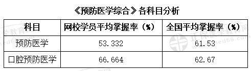 (1)根據(jù)全國考生掌握率的情況分析,《預(yù)防醫(yī)學(xué)綜合》兩門中,口腔預(yù)防醫(yī)學(xué)掌握率與預(yù)防醫(yī)學(xué)掌握率相差不大。對于口腔專業(yè)而言,按照課程難易度來講,預(yù)防醫(yī)學(xué)相對比口腔預(yù)防醫(yī)學(xué)內(nèi)容難一些,但是根據(jù)全國考生正確率來看,預(yù)防醫(yī)學(xué)的正確率還處于一個較高的水平,說明全國考生在此科目上平均掌握的還不錯。
