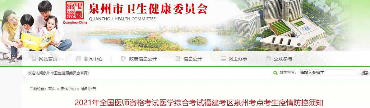 福建考區(qū)泉州考點2021年全國醫(yī)師資格考試考生疫情防控須知(新)