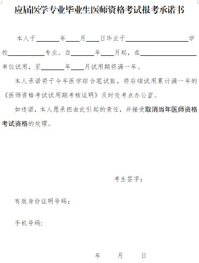 附件下載:應(yīng)屆醫(yī)學專業(yè)畢業(yè)生醫(yī)師資格考試報考承諾書