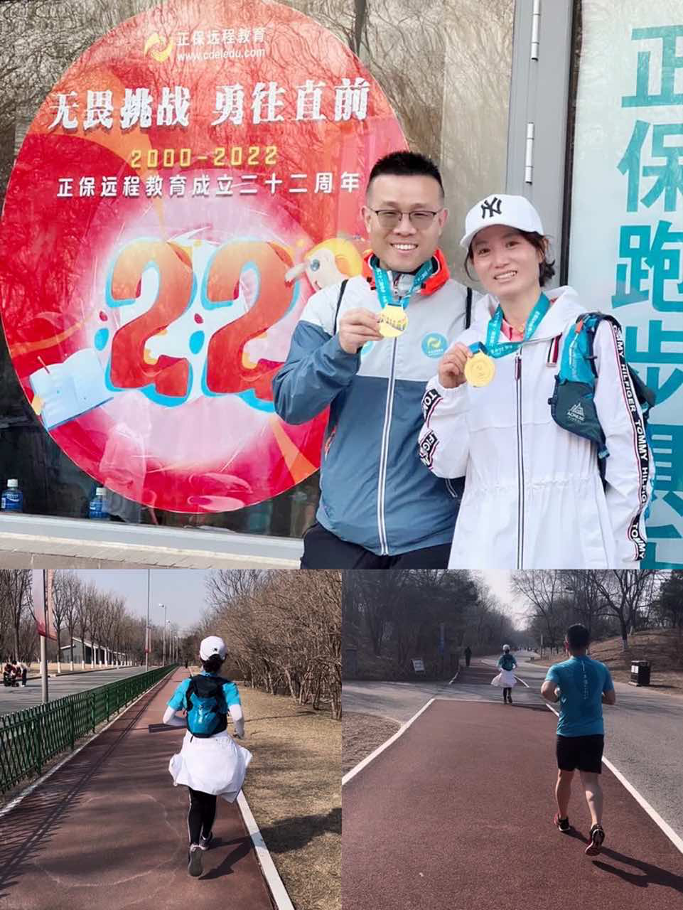 (錢韻文、林遠老師完成樂跑22公里-獎牌時刻)