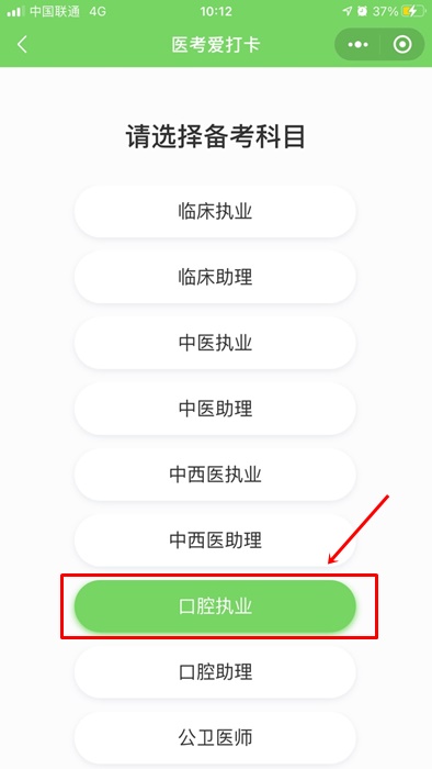 第二步:掃描之后會(huì)進(jìn)入如下截圖頁(yè)面,選擇您的備考科目,如口腔執(zhí)業(yè)醫(yī)師;