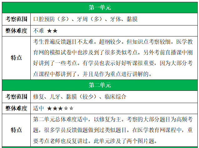 題目的考察細(xì)致度加深,考生不能只看表面的一些內(nèi)容,要抓細(xì)節(jié),要通過現(xiàn)象看本質(zhì),抓住一些知識(shí)的核心考點(diǎn)。對于口腔專業(yè)科目,題目難度適中,但是題干變長且考察的形式更為靈活,更加符合國家對臨床型人才的考察標(biāo)準(zhǔn)。