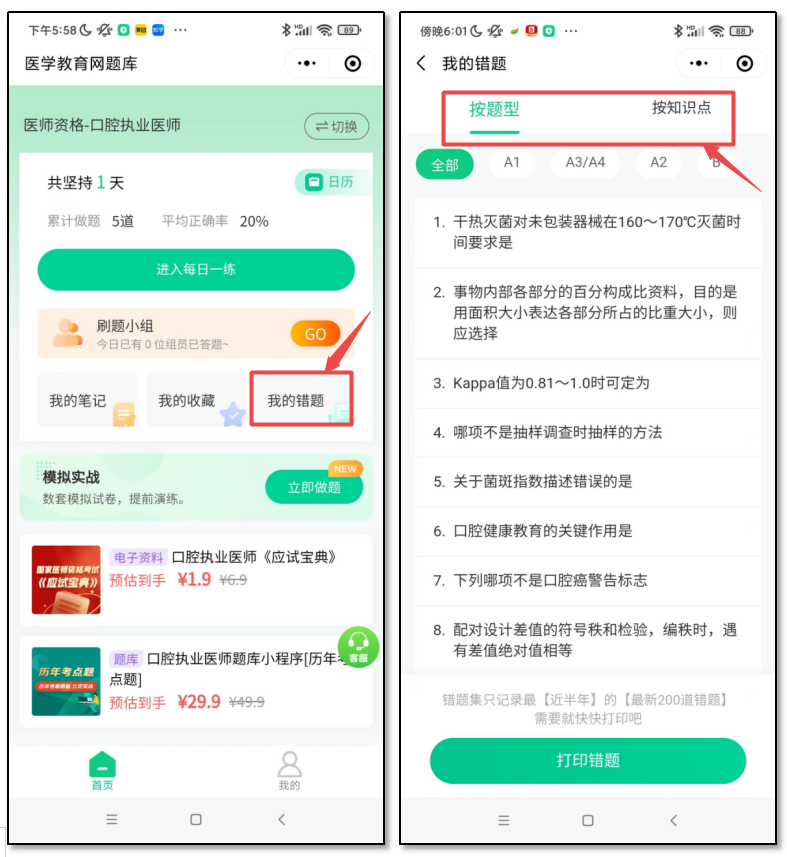 “我的錯(cuò)題”中會(huì)顯示做題過程中的所有錯(cuò)題,按“題型”及“知識(shí)點(diǎn)”分類。方便各位考生對于錯(cuò)題再次查缺補(bǔ)漏。