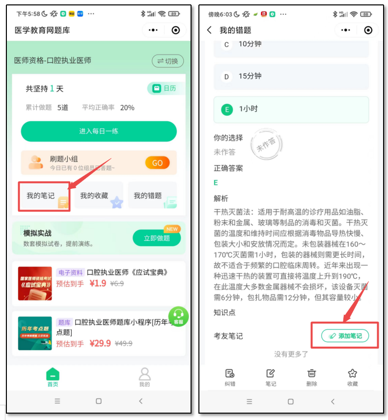 作答完畢查看試題解析時(shí),大家可以針對該道試題記錄筆記,并在“我的筆記”中展示;同時(shí)也可以在解析頁面查看其他考友的筆記。
