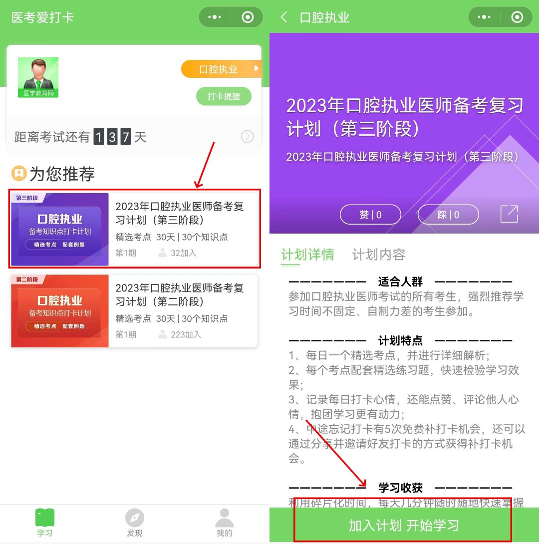 2023年口腔執(zhí)業(yè)醫(yī)師資格考試「醫(yī)考愛打卡」免費(fèi)刷題第3階段正式開啟!醫(yī)考生必備的打卡神器免費(fèi)用!話不多說,快來加入醫(yī)師打卡隊(duì)伍吧!具體解鎖姿勢(shì)如下: