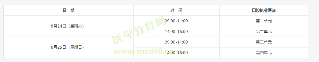 二、2019年口腔執(zhí)業(yè)醫(yī)師醫(yī)學綜合筆試全國統(tǒng)一考試時間為8月24日和25日:
