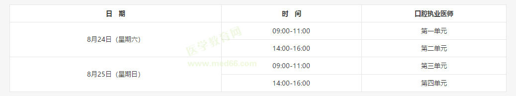 醫(yī)師資格考試分實踐技能考試和醫(yī)學(xué)綜合筆試兩部分。2019年口腔執(zhí)業(yè)醫(yī)師考試時間: