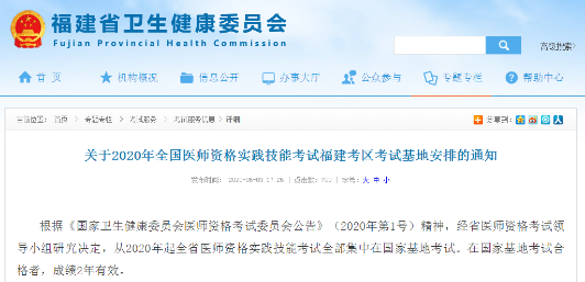 福建考區(qū)2020年全國醫(yī)師資格實(shí)踐技能考試考試基地安排公告!