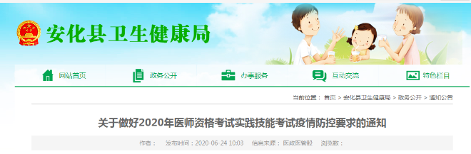 益陽安化縣關(guān)于做好2020年口腔執(zhí)業(yè)醫(yī)師資格考試實踐技能考試疫情防控要求的通知