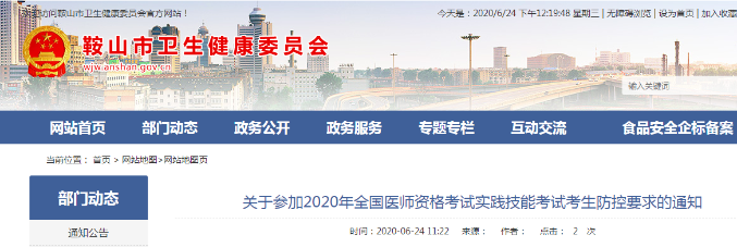2020年口腔執(zhí)業(yè)醫(yī)師實(shí)踐技能考試鞍山市考生防疫工作相關(guān)事宜說(shuō)明