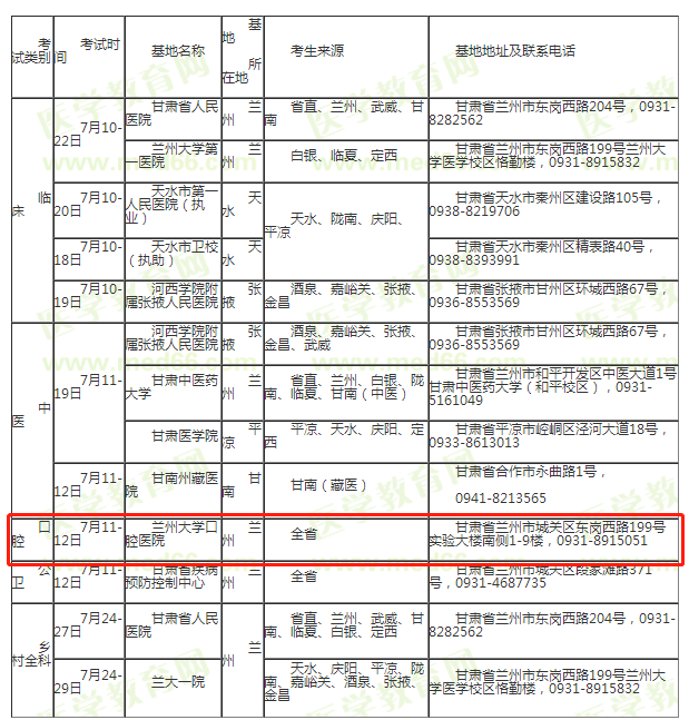 關(guān)于甘肅省2020口腔執(zhí)業(yè)醫(yī)師技能考試在哪考?為幫助蘭州市/嘉峪關(guān)/金昌市/白銀市/天水市/武威市/張掖市/平?jīng)鍪?酒泉市/慶陽(yáng)市/定西市/隴南市/臨夏州/甘南州等地報(bào)考2020口腔執(zhí)業(yè)醫(yī)師考試的考生了解,醫(yī)學(xué)教育網(wǎng)編輯整理具體通知如下: