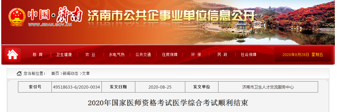 濟(jì)南考點(diǎn)2020年國(guó)家醫(yī)師資格考試綜合筆試考試圓滿完成,具體內(nèi)容相信很多考生都在關(guān)注,醫(yī)學(xué)教育網(wǎng)小編搜集整理如下: