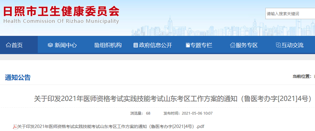 日照考點轉(zhuǎn)發(fā)2021年山東考區(qū)醫(yī)師資格實踐技能考試工作方案的通知