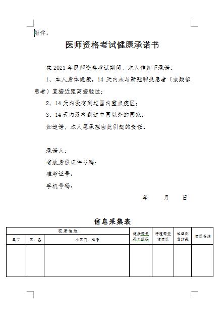 附件:? 2021年內蒙古考區(qū)醫(yī)師資格考試承諾書