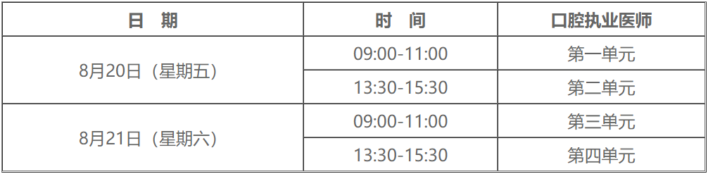 2021年口腔執(zhí)業(yè)筆試考試4個(gè)單元考試時(shí)間