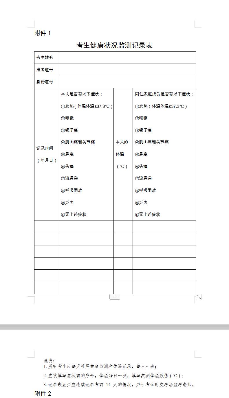 2021年北京市口腔執(zhí)業(yè)醫(yī)師綜合考試考生健康狀況監(jiān)測(cè)記錄表