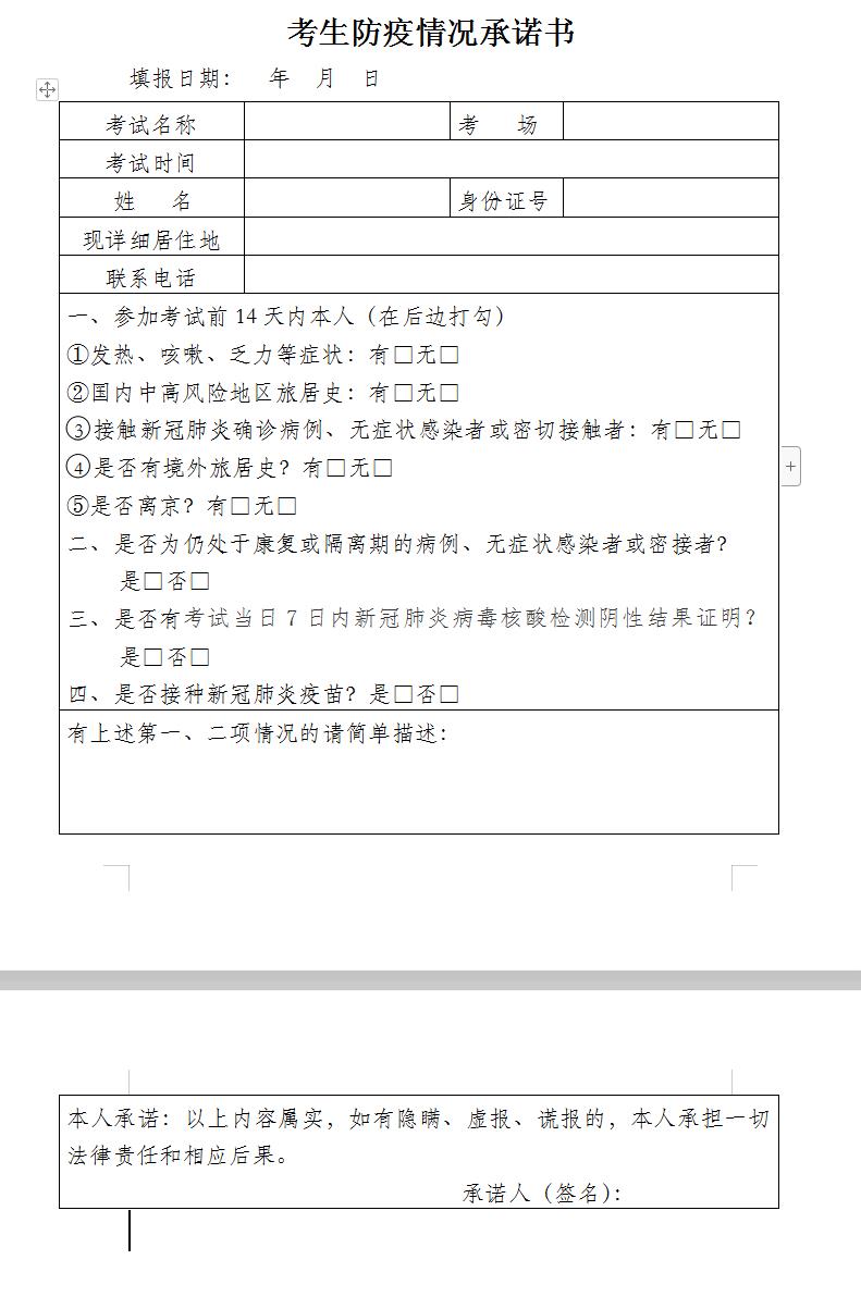 2021年北京市口腔執(zhí)業(yè)醫(yī)師醫(yī)學(xué)綜合考試-考生防疫承諾書下載
