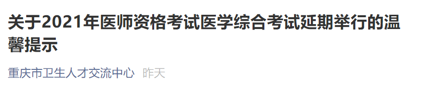 重慶市關(guān)于2021年口腔執(zhí)業(yè)醫(yī)師醫(yī)學(xué)綜合考試延期溫馨提示