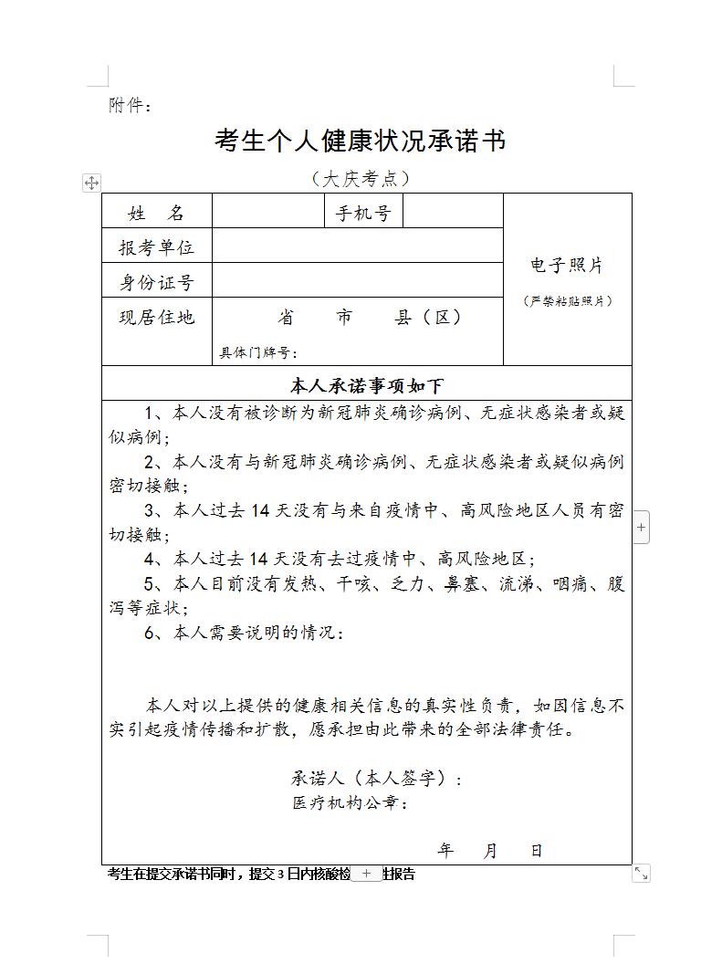 附件下載: 考生個(gè)人健康狀況承諾書(大慶考點(diǎn))